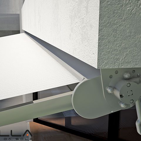 Il cassone infatti contiene con eleganza e discrezione la meccanica e il tessuto risultando particolarmente lineare in posizione richiusa e garantendone la totale protezione durante il periodo di non utilizzo.