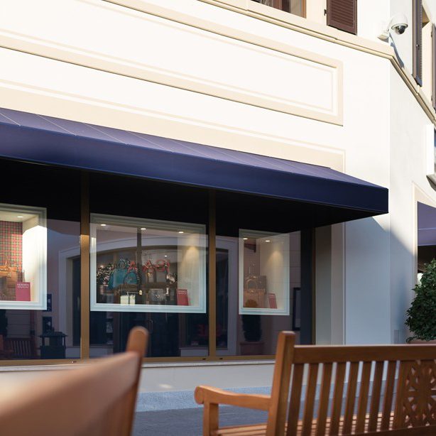 Le tende a capottina con struttura fissa sono composte da una struttura in alluminio rivestita di tessuto.